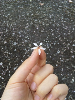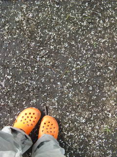 公園にて Category:日々のこと Date:2009年06月06日 今日の空には雲がたくさん。 ときどき雲間から、ぱあっと日の光が差し込んできて、気持ちが良いです。 携帯を新しくしてから、写真を撮るのが、たのしい。 古い携帯とは比べ物にならないくらい、きれいに撮れます(前のが古すぎたせい)。 もともと、かわいいものや、おいしいものや、きれいなものや、そういう色々、 見て見てあのねってするのが好きなので、携帯で手軽に写真が取れるのが嬉しい。 いつもの公園をふらっと歩いてきたので、続きに何枚か「見て見てあのね」します。 歩いていたら、地面にたくさん白いものが落ちていて、 なんだろう、と、よく見てみるとお花でした。 上を見たら、風が吹きぬけるごとに、さあっと花吹雪が。 何の花かな、この花たちのおかあさんは誰かな。 ちょっぴり転びそうになりつつ、上を見ながらふらふらして、見つけました。 苔むした立派なおかあさんです。 花の咲いている枝も写してみたけれど、さすがに小さくてわからないかしら。 とにかくこの木の枝から、花がたくさん散っているの。 木の名前が書いてないかと思って、まわりをぐるっと一周してみたら、 「この付近でカラスが子育てしています」という頭上注意の貼り紙を見つけました。 取った順番としては一番先なのだけれども、これを先にすると、 やっぱり食べ物の写真ばっかりで恥ずかしいかな、と思い、後にしました。 度々「お気に入りのパン屋さん」と書いているお店のコッペパン。 ラズベリージャムとミルククリームを塗ってもらいました。 この赤は、ちょっと青みのある、とても深い赤で好き。 いちごジャムだと、もう少しやさしげな、黄色っぽい赤をしています。 あと、パッケージのくまさんが可愛くて買ったキャラメルミルクティー。 香ばしくて美味しかったよ。 何度かわたしの手が登場しているけれども、色気もそっけもなくてちょっぴりさみしい。 ともだちのおんなのこたちは、みんな、爪をかわいくしているの。 色とりどりに、お花や、きらきらや、水玉や、いろんなのをつけて。 かわいいなあ、と思うけれども、ギターが弾けなくなっちゃう。 ……そういえば、つづきの一枚目に、色気もそっけもない足元が写っています。 サスペンダーつきの、男の子みたいな、というか、メンズのボトムスを穿いています。 実は、もっているパンツの半分以上、メンズなの。 おんなのこしたいときは、スカートやワンピースを着ちゃうから。 話のついでに、おまけ。 社員割引で買ったジーパンの裾を、ピンクとエメラルドの糸で裾直ししてみました。 自分で縫うと、こういうことも出来てたのしいのだけれど、それもあと数日です。 さみしくなってきたよ。 PR